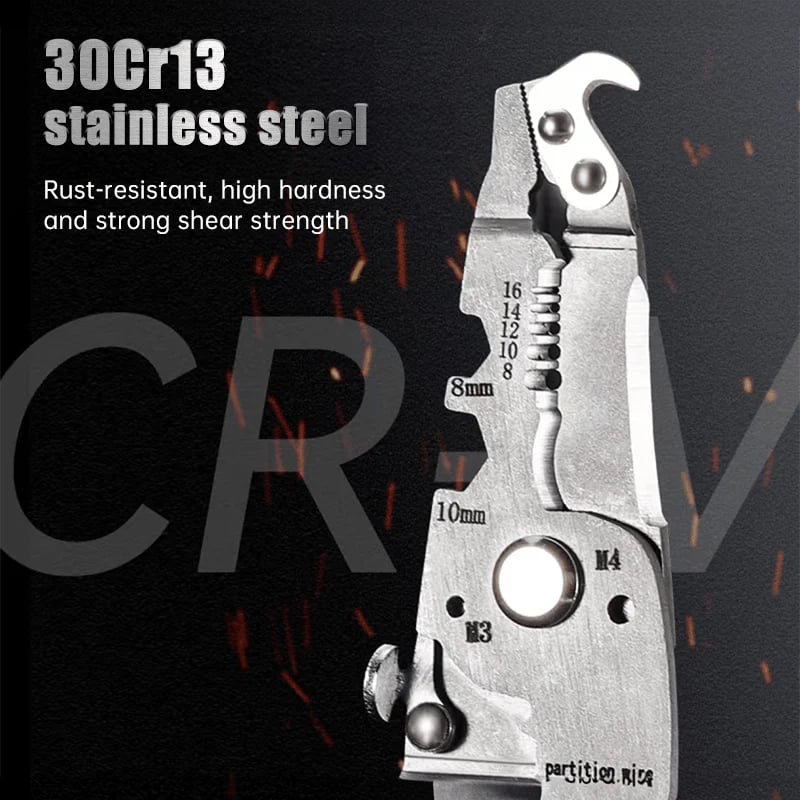 It can meet various electrical operation needs such as wire cutting, wire stripping, crimping, wire winding, wire splitting, clamping, wrench, etc.