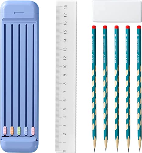 mamymarket™-Multifunctional Pencil Case for Kids with 5pcs Pencils2B, Eraser and Ruler